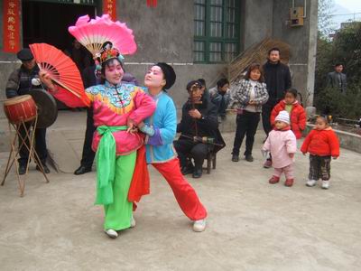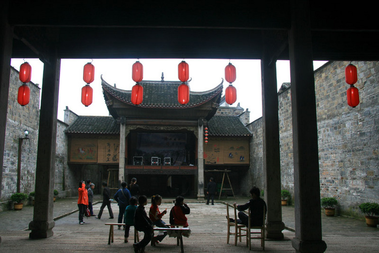 臨河戲臺(tái)幾乎天天都唱戲給烏舡子看。唱他們最愛看的湘劇,并且都是折子戲而非整場(chǎng)戲,因?yàn)檎麍?chǎng)戲常常要唱十天半月,烏舡子沒(méi)看得完就要返航。折子戲短,最切合烏舡子的??繒r(shí)日。唱的多半是“三國(guó)戲”:《空城計(jì)》、《定軍山》、《走麥城》、《三氣周瑜》,還有《黃鶴樓》、《摘梅桃》……數(shù)也數(shù)不完。戲班子都是由八元堂寧鄉(xiāng)會(huì)館從各地邀請(qǐng)來(lái)的,免費(fèi)公演。招呼戲班子的費(fèi)用由會(huì)館埋單,免不了要請(qǐng)到怡華樓、月華樓、奇珍閣等有名的飯館去吃“八大碗”,唱完戲還有夜宵招待,吃靖港的特色小吃。戲班子當(dāng)然就更賣力。烏舡子上的船老大不但愛看戲,還蠻會(huì)享受,他們把船搖得正正地對(duì)準(zhǔn)臨河戲臺(tái),和小老婆肩并肩雙雙坐船頭,一邊津津有味地看戲一邊津津有味地喝著靖港谷酒,吃著從靖港街上買來(lái)的香干子和鹵菜,搖頭晃腦,張嘴咋舌,樂(lè)不思蜀。也有許多古鎮(zhèn)居民來(lái)看免費(fèi)戲,他們常常爬到烏舡子上,與船老板和和老板娘一起看戲,船老板熱情大方,會(huì)讓出座位來(lái),邊看戲邊和本地居民扯談,對(duì)古鎮(zhèn)也就更加熟悉了解。