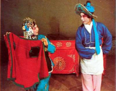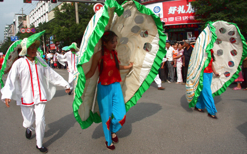 蚌殼用蔑扎骨架,蒙布或紙,外繪蚌紋,以紅綠綢鑲邊,內(nèi)貼水銀碎鏡片。由一旦一丑表演。旦扮蚌殼精,身背蚌殼,表演“扯四角”、“開蚌”、“戲水”、“整容”、“照鏡”、“戲翁”等動(dòng)作,含蓄逗趣,活潑可愛。丑扮魚翁,手持撒網(wǎng),表演“踩水”、“窺蚌”、“戲蚌”等動(dòng)作,詼諧風(fēng)趣。常令人捧腹。伴奏以弦樂(lè)為主,伴以竹笛,幽雅悅耳。