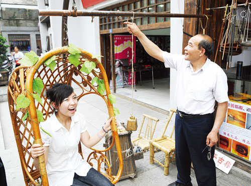 歲月悠悠,蒼桑易老,蘆江八景隨同古鎮(zhèn)的式微而漸行漸遠(yuǎn),八景的美麗也由此淡出了古鎮(zhèn)人的視線。然而記憶猶存,遺跡猶在:濤聲依舊的湘江岸邊,一棵棵依然守望著碧水藍(lán)天的古柳,便收藏著當(dāng)年“柳浪聞鶯”的遺傳秘碼和鶯啼聲聲中的浪漫故事。散落在古鎮(zhèn)的街巷庭院和廢墟中依然完好的南瓜石墩,便有往日夏天傍晚的習(xí)習(xí)涼風(fēng)從石中逸出,輕聲訴說(shuō)著“石礅夏涼”的美妙光景。湘江邊那座曾經(jīng)映照過(guò)船帆點(diǎn)點(diǎn)和一江逝水的樓閣,雖然雕梁棟已成虛而遺跡難覓,卻被作為“望江樓”商標(biāo)復(fù)活在了名聞遐邇的靖港布鞋上,讓后人依然能一睹“樓鏡瀟湘”的精致。那兩棵“七星傲月”檀和“八卦傳神”樹的奇枝妙冠雖然因蒼老而羽化登仙,盤虬蒼然的樹根卻依然鼾眠在古鎮(zhèn)天主教堂的斷垣殘椽和插花寺土堆下夢(mèng)著曾經(jīng)的枝繁葉茂和傳奇體驗(yàn)。“扇子迎客”的扇子碼頭,“獨(dú)腳鶴立”的獨(dú)腳吊樓,“梨園戲水”的臨河戲臺(tái),從它們留守在故址中的石墩、石柱、石板和巧奪天工的石雕,依然能喚起古鎮(zhèn)人從記憶深處復(fù)原出它們當(dāng)年在熱鬧繁華中的妖嬈和神圣。