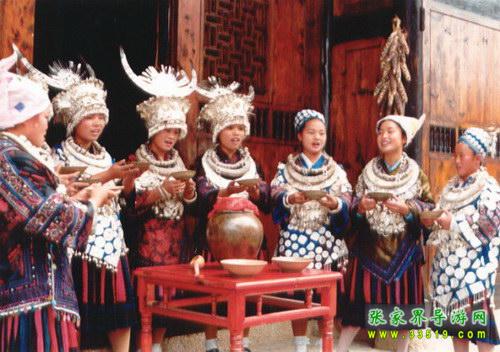 土家人叫槽門,是居住在一個(gè)院落里的土家人公用的門。每逢喜慶的日子,都要在這里舉行攔門儀式,以迎接高貴和尊敬的客人。按土家風(fēng)俗,進(jìn)槽門要對(duì)歌喝酒,如果客人對(duì)歌能勝,就輕松入門,如客人對(duì)歌輸了就得喝攔門酒后入門。喝攔門酒已成為一種迎賓的方式。