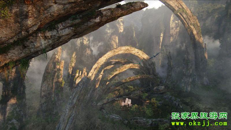 巍巍群山漂浮在天空,云霧繚繞,美麗壯觀……這是電影《阿凡達(dá)》中的經(jīng)典場景。阿凡達(dá)的全球熱映使人們對這部電影充滿了驚嘆和好奇,而這部影片奇幻的拍攝地到底是在哪里這一問題也引發(fā)了影片熱愛者的紛紛推測。導(dǎo)演卡梅隆的一句“中國元素給《阿凡達(dá)》大大增色”不僅勾起了旅游愛好者的向往之心,更是引發(fā)了一場不小的爭論。片中美輪美奐的“哈利路亞山”讓人驚嘆向往,現(xiàn)實版的“哈利路亞山”到底是以黃山還是張家界的武陵源為背景,成了網(wǎng)友和旅游界的熱議焦點。“第42秒出現(xiàn)過張家界的南天一柱,第33分21秒出現(xiàn)過黃石寨的玉屏峰,第55分53秒出現(xiàn)過寶峰湖的瀑布……”在網(wǎng)上,有發(fā)帖者將這些在《阿凡達(dá)》影片中出現(xiàn)過的張家界景致一一羅列。通過慢放發(fā)現(xiàn),影片中大概有25分鐘完全是張家界的山水風(fēng)光。出現(xiàn)多次的是黃石寨前山的南天一柱,金鞭溪的劈山救母出現(xiàn)不低于5次,然而出現(xiàn)最多的還是寶峰湖瀑布和袁家界迷魂臺里面的擎天柱。而張家界和黃山的最大區(qū)別是黃山是花崗巖地貌,上面非常光滑,幾乎沒有植被,而張家界是石英砂巖地貌,上面植被覆蓋非常茂盛。