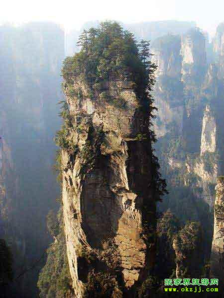 “南天一柱”為張家界“三千奇峰”中的一座,位于世界自然遺產(chǎn) 武陵源風(fēng)景名勝區(qū)袁家界景區(qū)南端,海拔高度1074米,垂直高度約150米,頂部植被郁郁蔥蔥,峰體造型奇特,垂直節(jié)理切割明顯,仿若刀劈斧削般巍巍屹立于張家界,有頂天立地之勢,故又名乾坤柱。