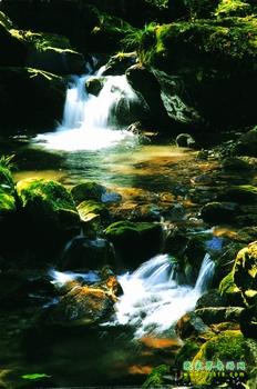 為沙刀溝第一景。一塊崩塌的巨石橫臥溪中。石的一端擱于右岸,供成一孔。溪水穿孔而過,發(fā)出叮叮咚咚的響聲,在溪內沖成一個1米多深的潭。潭水清澈如鏡,潭底紅白砂石光潔晶瑩,魚、蛙時而嬉游其中。潭兩邊石峰高聳環(huán)峙,闊葉林、灌木叢茂密常青,峰麓遍生苔蘚,如鋪綠毯。山峰、碧空倒映潭底,水中掠過縷縷白云。潭右上方有一高約50米、直徑約5米的石柱立于路旁,綠葉扶疏,秀麗挺拔,與清心潭陪襯成奇特佳境。立潭觀景,塵念俱消。
