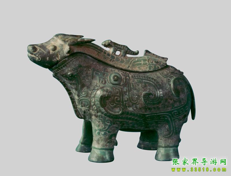 展出有商周時(shí)期至明清時(shí)期的各類(lèi)文物100余件,其中包括:禮器、兵器、量器以及古人在日常生活中所使用的各類(lèi)生活器具,是研究和了解衡陽(yáng)先民在這塊土地上繁衍生息的最生動(dòng)的教材;也是研究當(dāng)時(shí)衡陽(yáng)處于楚越兩大文化相互生存和融合的最好的實(shí)物資料。如國(guó)寶動(dòng)物紋青銅提梁卣、越式鼎、楚式青銅劍等等。在180平方米的展室中陳列了青銅精品90余件。其中以春秋動(dòng)物紋提梁卣最具魅力。與它相媲美的商代青銅牛尊,工藝之精湛,美侖美奐。