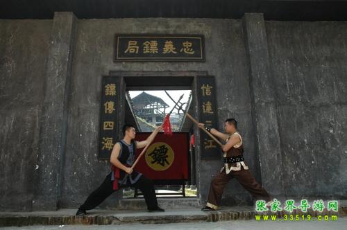 忠義鏢局,它始建于清乾隆四十二年(1777),位于洪江龍船沖,這里會(huì)館、錢莊、豪宅林立,堪稱洪江的曼哈頓。與我們?cè)?a class="insidelink" href="http://m.danublue.com/hongjiang/" target="_blank" title="洪江古商城">古商城看到的窨子屋不同,這是一座典型的北方四合院,前庭后院,布局嚴(yán)謹(jǐn),軸線明確,左右對(duì)稱,主次分明。前院是鏢師練功習(xí)武之地,墻壁上書有“忠”、“孝”、“禮”、“義”四字和“十八羅漢練功圖”;后院為鏢師起居和洽談生意之所,內(nèi)供奉關(guān)武大帝。忠義鏢局主要為豪商巨賈押運(yùn)銀票、貨物,看家護(hù)院,坐夜守店,也開館收徒,傳授武藝。忠義鏢局的掌門人劉大鵬,湖南長沙人,幼時(shí)即入嵩山少林寺習(xí)武,不僅精通十八般武藝,而且頭腦精明,他把鏢局開在這洪江最繁華的金融一條街,足見他的經(jīng)商意識(shí)和人面廣了?,F(xiàn)在忠義鏢局現(xiàn)場(chǎng)表演古代押鏢、行鏢全過程,是人們了解中國古代鏢行歷史文化的活性博物館。有興趣的朋友可以去洪江古商城親自感受一下當(dāng)時(shí)押鏢的情景吧。