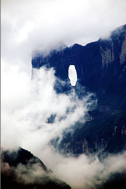 天門洞開:九百九十九級(jí)臺(tái)階登上天門洞,登天祈福。高131.5米,寬50余米,南北對(duì)開于千尋素壁之上,氣勢(shì)磅礴,巍峨高絕,是罕見的高海拔穿山溶洞,更是盡顯造化神奇的冠世奇觀,2006俄羅斯空軍張家界天門山特技飛行表演讓天門洞懸念升級(jí),再次成為全球焦點(diǎn)。