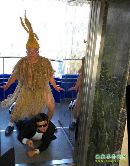 2012年10月31日,張家界市旅游局副局長(zhǎng)、正處級(jí)調(diào)研員鄭亞平在張家界版《江南style》MV中客串“稻草鳥(niǎo)叔”,在劇中表演得入木三分。這位身著稻草的長(zhǎng)者跨在一位年輕“帥哥”身上跳舞,動(dòng)作之滑稽,表情之搞笑,可謂“史上最鳥(niǎo)的旅游官員”。鄭亞平坦言:“我年近60,在退休之前為張家界旅游發(fā)展多奉獻(xiàn)自己,退休后我才不會(huì)遺憾!”