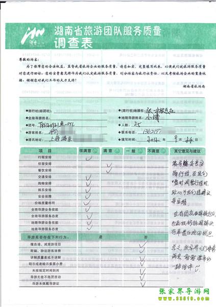 2012年9月24日楊小姐一行25人旅游質(zhì)量反饋:張家界之行非常滿意