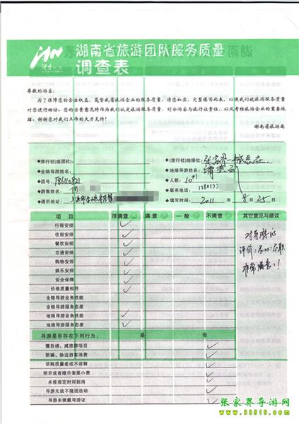 2011年8月25日何先生一行11人旅游質(zhì)量反饋:導(dǎo)游盡心盡職,非常滿意!