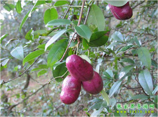 八月瓜又名八月炸,木通和三葉木通的果實(shí),野生果品。因八月果熟開裂而得名。果形似香蕉,富含糖、維生素C和12種氨基酸,以及人體不能合成的纈基酸、蛋氨酸、異亮氨酸、苯丙氨酸、賴氨酸等。果味香甜,為無(wú)污染的綠色食品,有“土香蕉”之稱。以天子山景區(qū)居多。索溪峪、楊家界等山麓谷地、林緣灌木叢中野生資源豐富。為上乘野果,現(xiàn)被有關(guān)部門列為重點(diǎn)開發(fā)項(xiàng)目。
